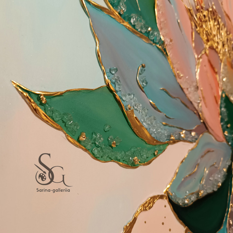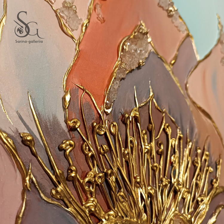 تابلو نقاشی دکوراتیو برجسته طرح گل تمام کار دست