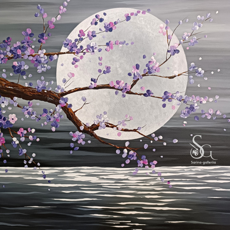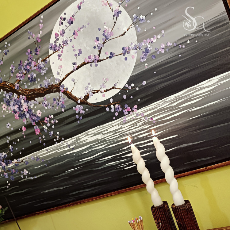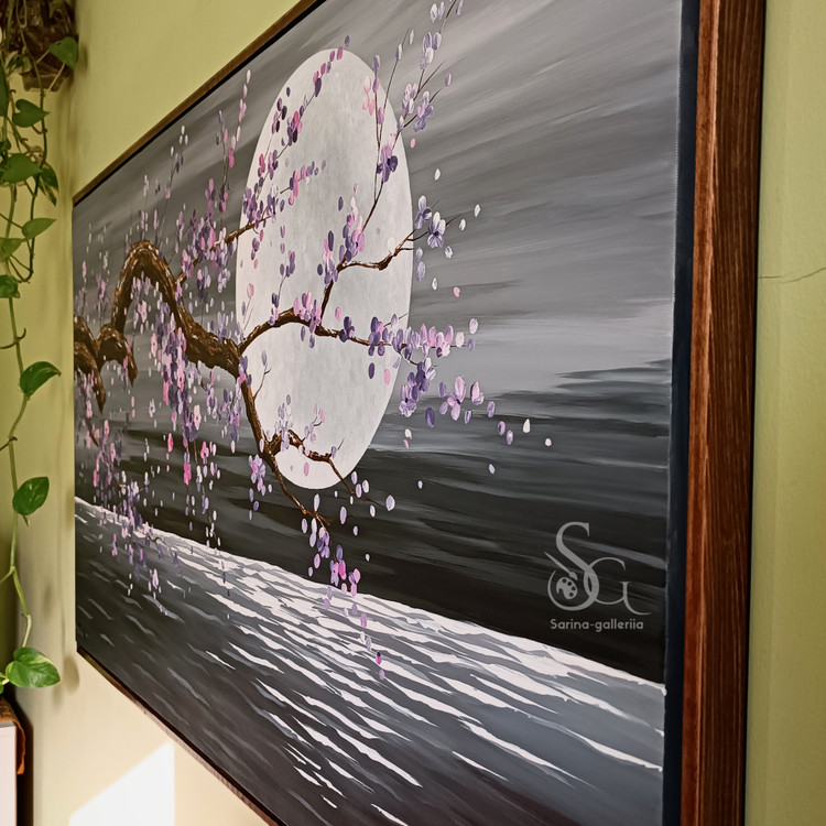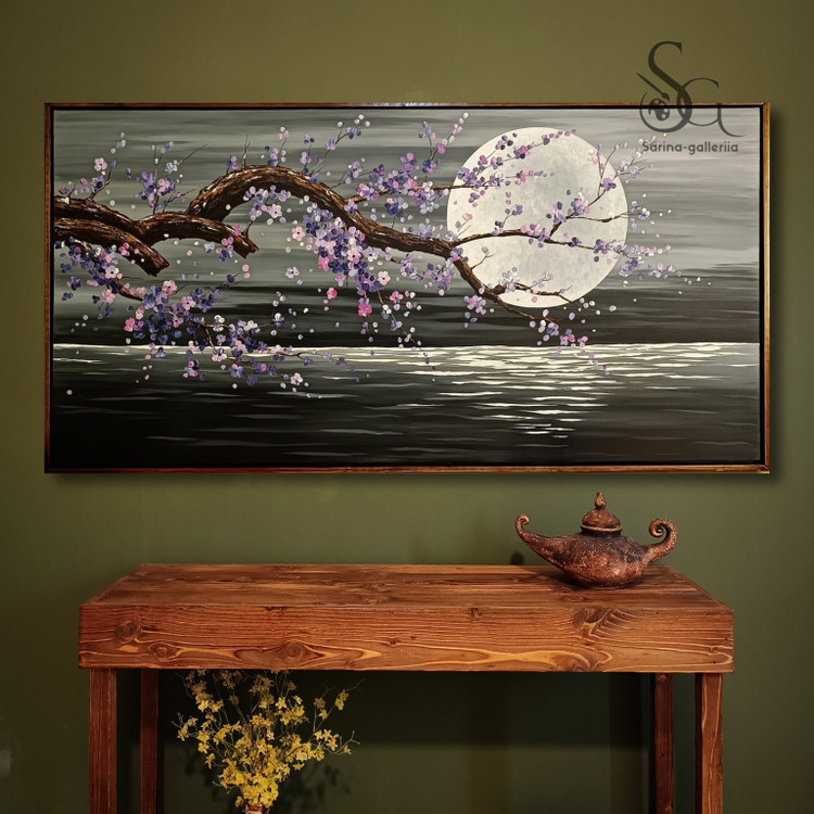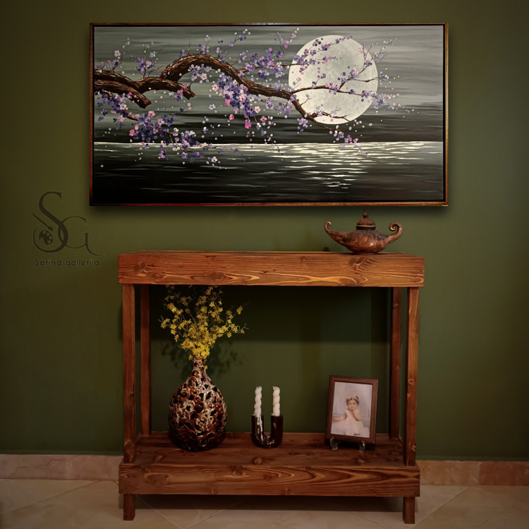 تابلو نقاشی دکوراتیو منظره ماه و دریا تمام کار دست