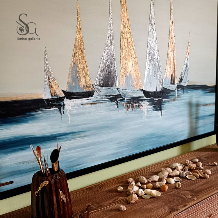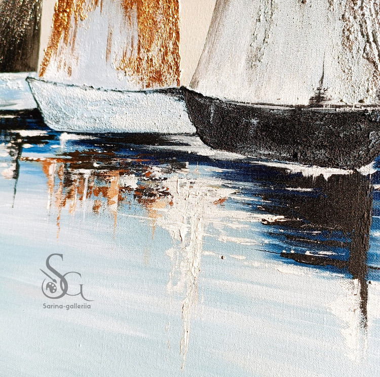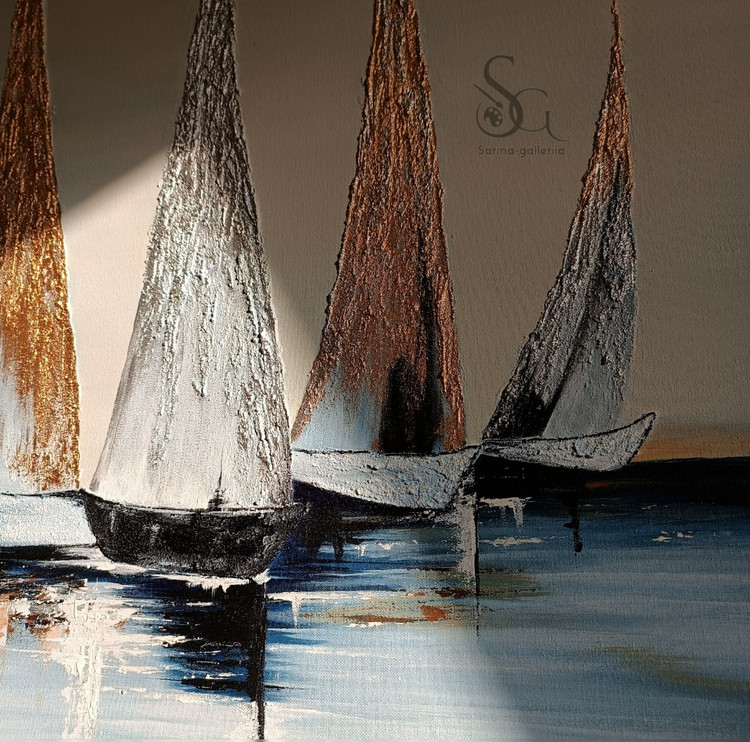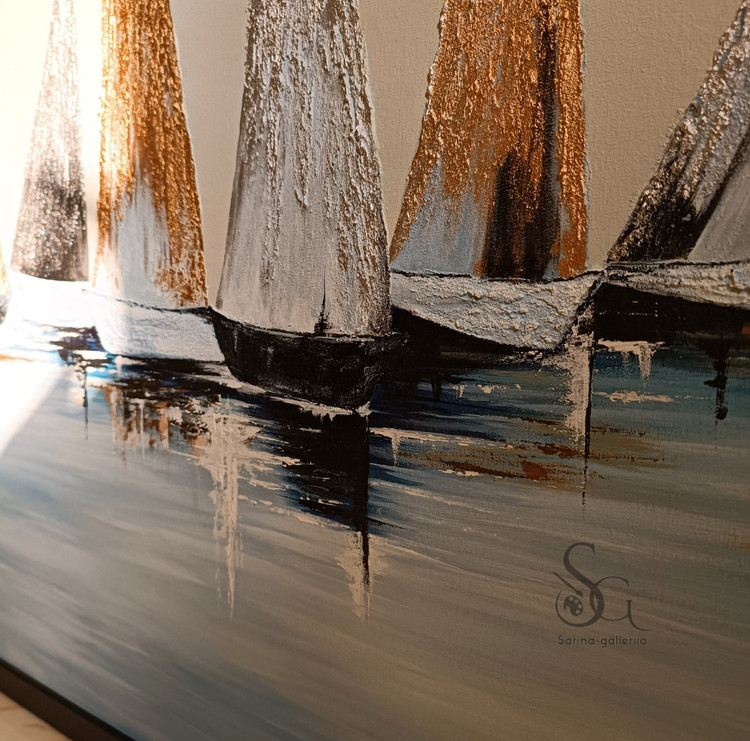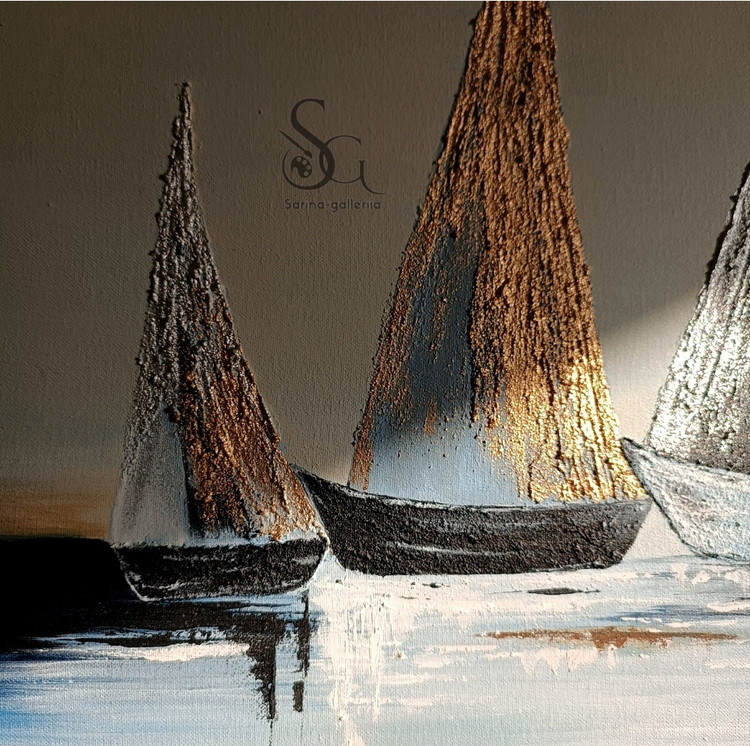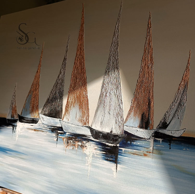 تابلو نقاشی دکوراتیو برجسته دریا و قایق تمام کار دست