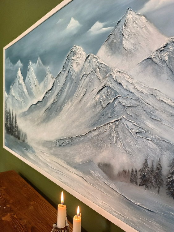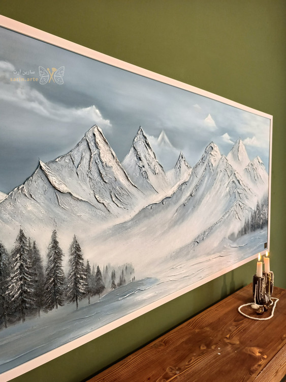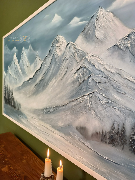 ✨تابلو نقاشی کوهستان برجسته صفر تا صد کار دست اجرا شده روی بوم نقاشی درجه یک